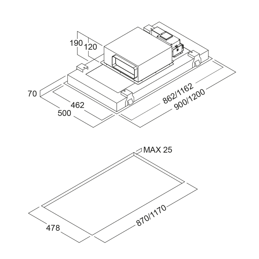 Dinamičko svjetlo, Filter alarm, Intenzivna snaga, Izmjena zraka, Obodni usis, Prilagođena veličina, Timer